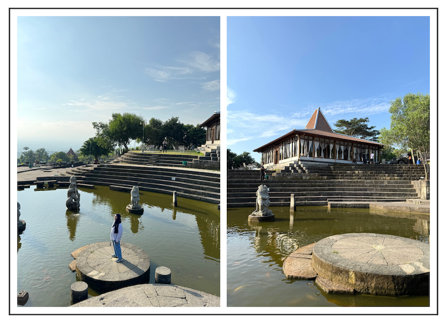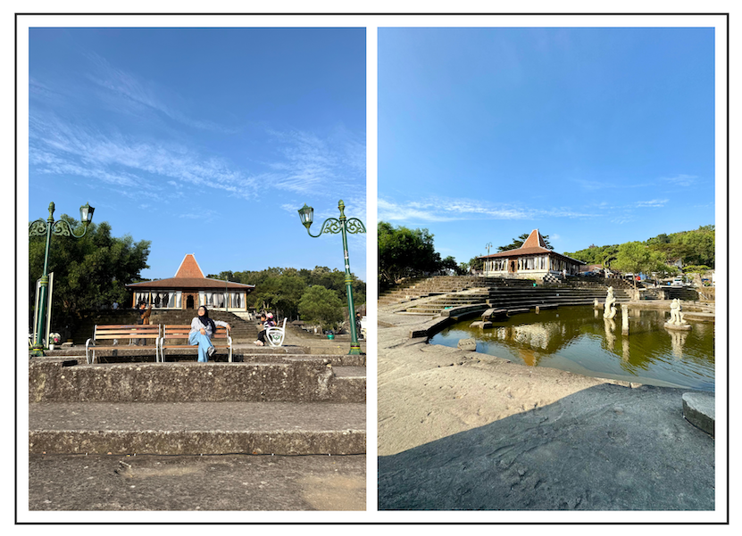 Jadilah beberapa menit kemudian, kami berdua sibuk mengutak-atik fungsi kamera di gawai saya dan melakukan banyak uji coba. Hasilnya? Lumayan banget. Banyak foto saya yang hadir di sini adalah hasil jepretan Mas Adi. Tentu saja atas arahan “guru foto mendadak” yang semangat bergaya di depan banyak titik estetik.