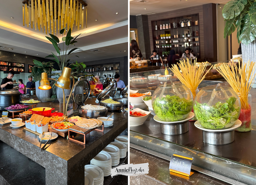 Saya akhirnya meminta si bungsu untuk mengelilingi setiap sudut meja hidangan sementara saya menjaga meja yang kami tempati. Laporannya sungguh menakjubkan. Bahkan si bungsu pun datang dengan decak kagum karena belum pernah sepanjang hidupnya menginap di hotel, ada sajian sarapan seperti di food court.