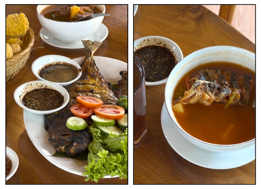 Ikan kuwe bakar nya juga mantab. Bumbunya meresap dengan baik meski di awal saya sempat khawatir karena tampak luar nya legam banget. Ukurannya aja yang terlalu besar untuk kami bertiga. Jadi setengah porsi dari sajian ini kami putuskan untuk dibawa pulang saja.