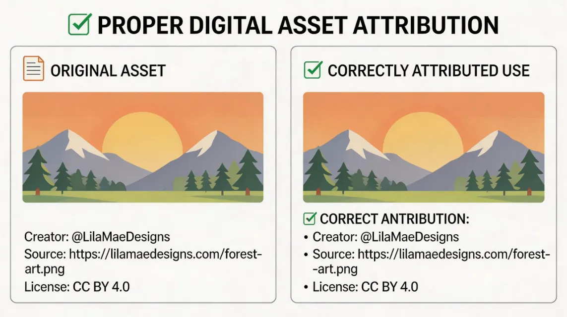 Pemberian atribusi adalah cara paling efektif untuk menghindari penggunaan ilegal konten teks atau visual milik orang lain. Dengan mencantumkan pemilik aslinya, Anda secara jelas menunjukkan bahwa materi tersebut milik penulis atau pencipta yang disebutkan. Dengan demikian, baik platform hosting maupun pencipta kekayaan intelektual tersebut tidak akan keberatan.
